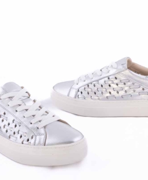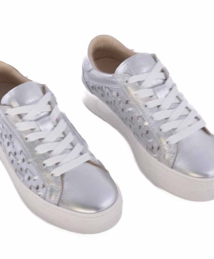 Sneakers dama albi piele cu detalii argintii