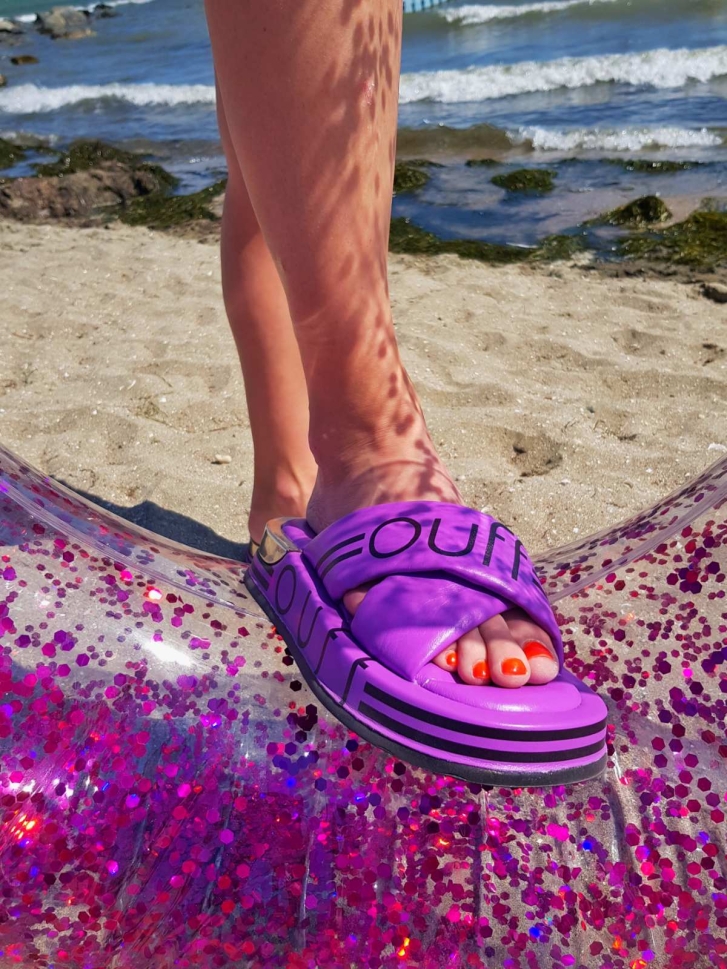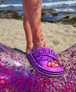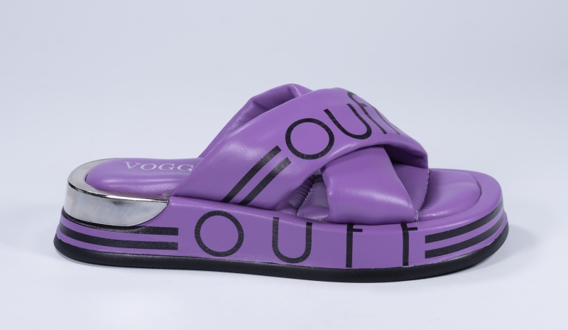 VOETTI Silver Sparkle Flower Slide Sandals