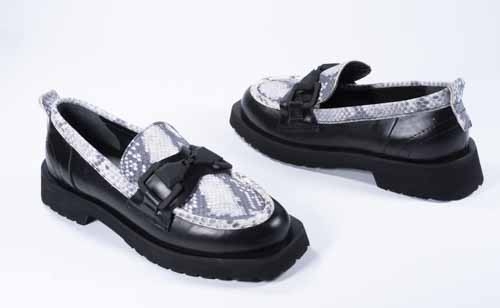 VOGGE Pantofi din piele naturală în negru cu imprimeu