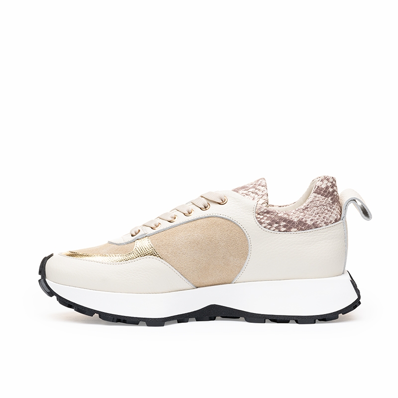 Sneakers Dama Piele Bej & Snake Print - Eleganță Lejeră
