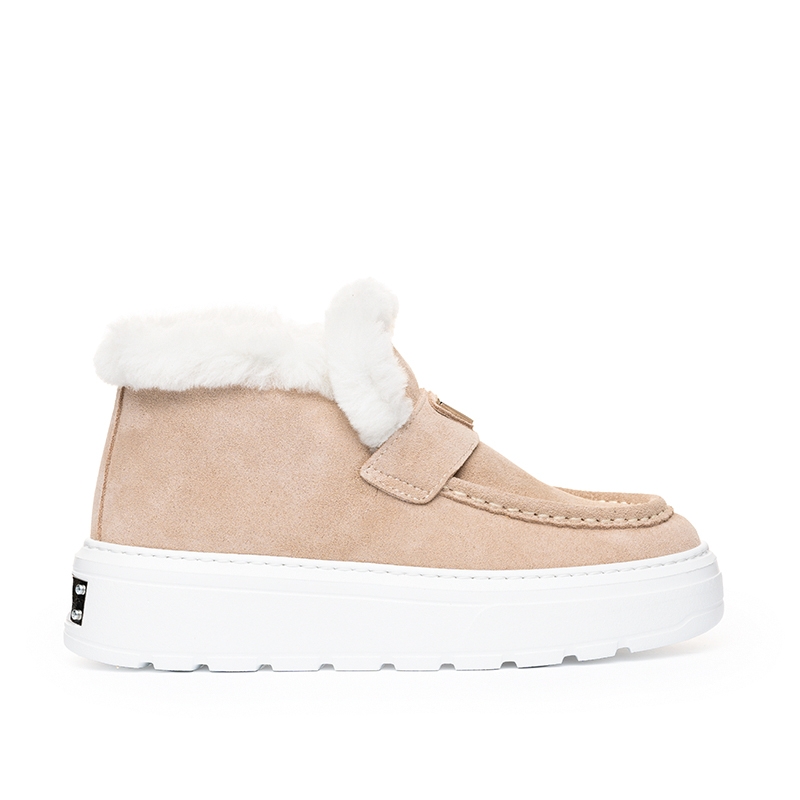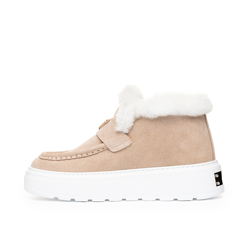 Culoarea neutră a ghetelor le face ușor de asortat cu o varietate de ținute, de la jeans și pulovere groase, până la fuste și paltoane elegante. Detaliile subtile, precum finisajul cu blană ecologică, adaugă o notă de rafinament și stil.