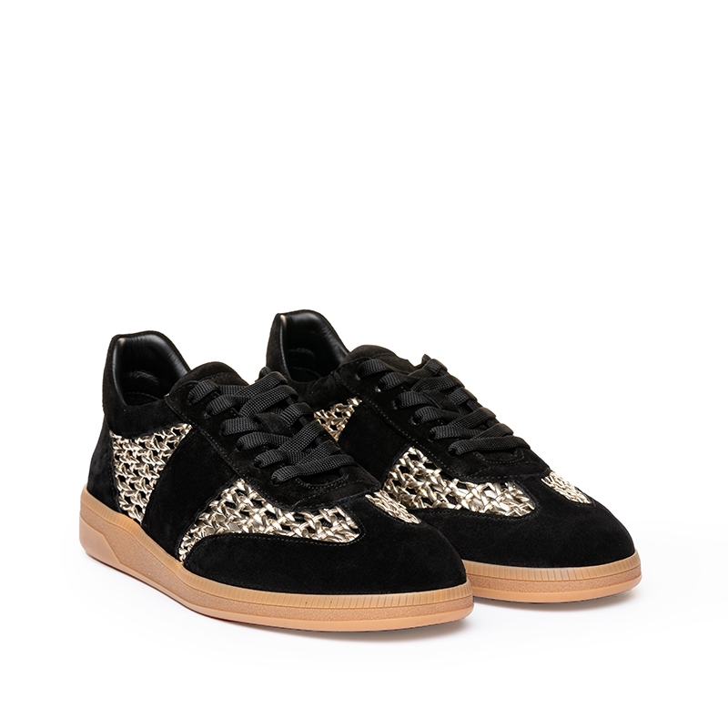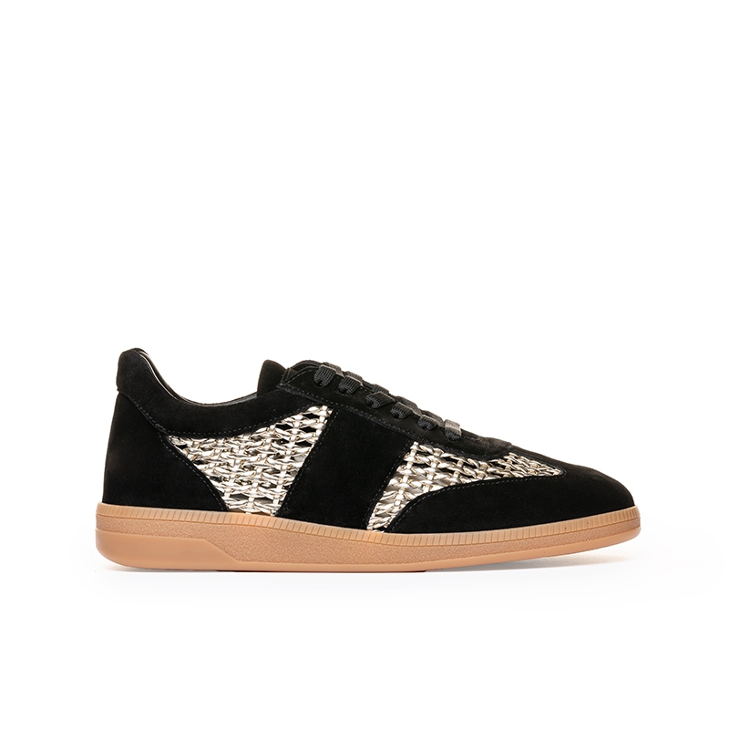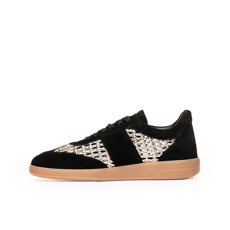Acești adidași se remarcă prin designul lor unic, unde pielea neagră de calitate superioară se îmbină armonios cu detaliile textile, creând un aspect vizual captivant. Accentele subtile și finisajele impecabile evidențiază atenția la detalii și pasiunea pentru modă.