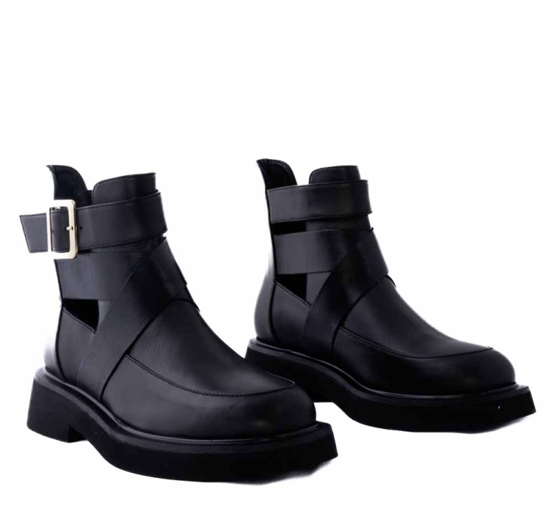 Descoperă eleganța și stilul unic cu aceste Ghete Dama din Piele Neagră, accentuate de o cataramă distinctivă. Perfecte pentru a adăuga un plus de rafinament oricărei ținute.