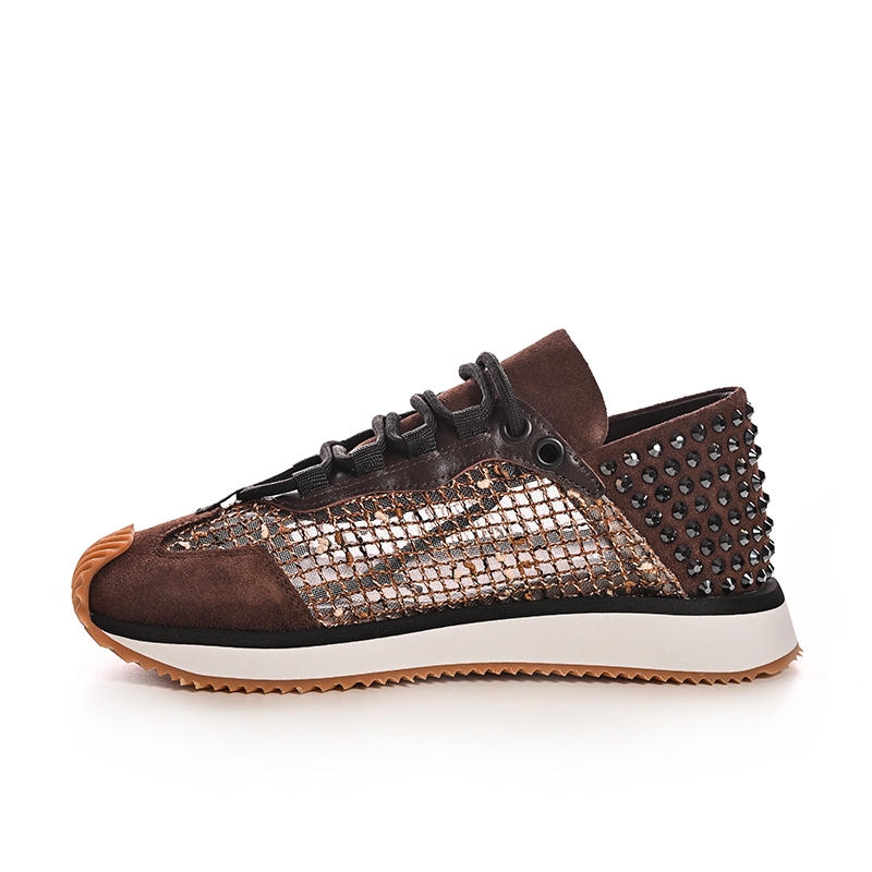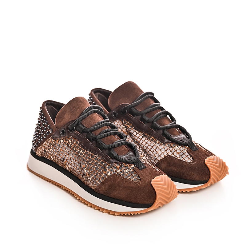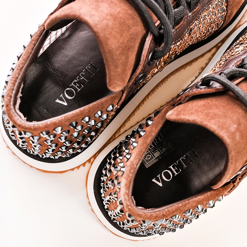 Descoperă eleganța urbană cu acești sneakers damă Voetti, din piele maro. Detaliile cu ținte adaugă un plus de atitudine și stil.