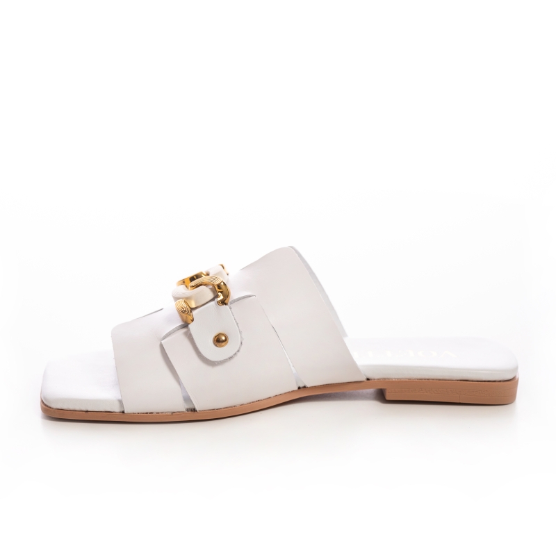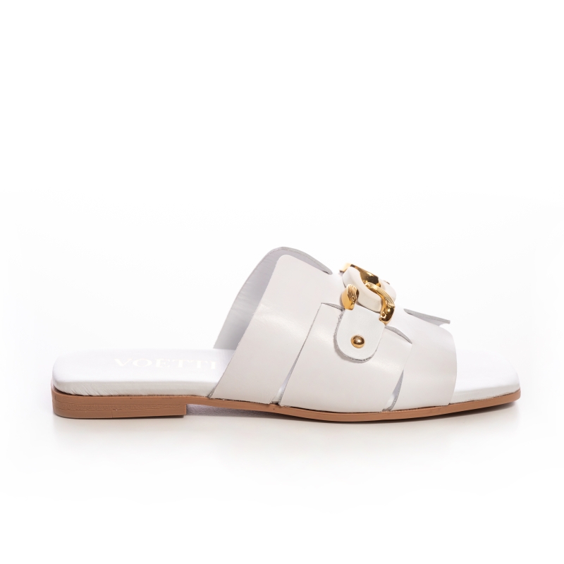 Sigur! Iată o sugestie:Papuci Dama Piele Albi cu Lanț Aurie - Eleganță și Confort