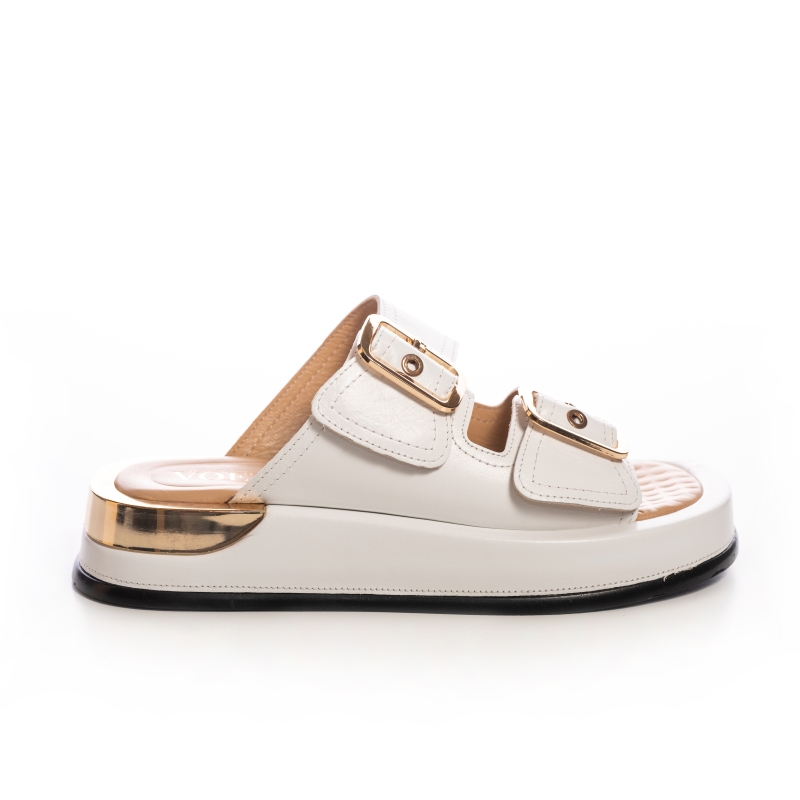 Prima pagină Sandale joase Dama Piele Albă cu Catarame Aurii Voetti