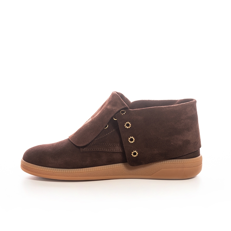 ``` * Material: Piele întoarsă de calitate superioară * Culoare: Maro intens, ușor de asortat * Design unic: Detalii care atrag atenția și te scot în evidență * Confort: Talpă flexibilă și căptușeală moale pentru o purtare îndelungată * Versatilitate: Se potrivesc cu diverse stiluri vestimentare
