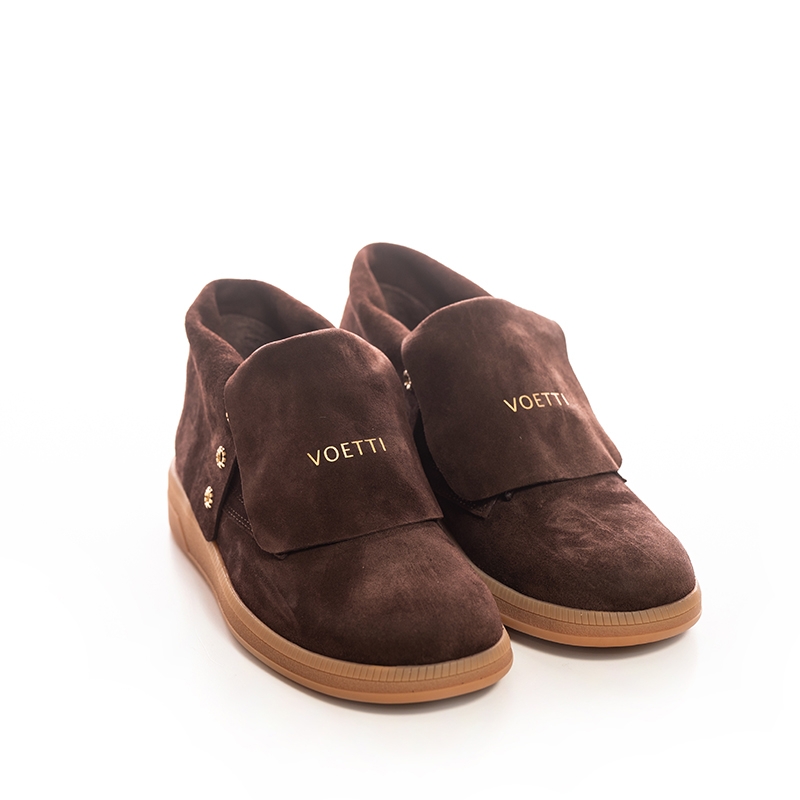 Descoperă eleganța și confortul cu ghetele maro de damă Voetti. Realizate din piele întoarsă de calitate superioară, aceste ghete îmbină stilul unic cu un design modern.