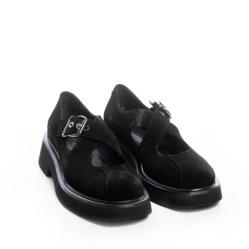 Caracteristici Principale: * Piele naturală de înaltă calitate: Durabilă, moale și respirabilă, asigurând confort pe termen lung. * Curea reglabilă cu cataramă: Permite o fixare personalizată și adaugă un element de design clasic. * Talpă robustă: Oferă stabilitate, aderență și confort sporit. * Design versatil: Potriviți pentru o varietate de ocazii și stiluri vestimentare. * Culoare neagră clasică: Ușor de asortat cu orice ținută, adăugând o notă de eleganță. Stilizare VersatilăPantofii Mary Jane din piele neagră sunt extrem de versatili și pot fi purtați într-o varietate de moduri. Asortează-i cu o fustă midi și o bluză elegantă pentru un look sofisticat, sau cu o pereche de pantaloni skinny și un pulover confortabil pentru un stil casual-chic. Indiferent de alegerea ta, acești pantofi vor adăuga un plus de eleganță și rafinament oricărei ținute.