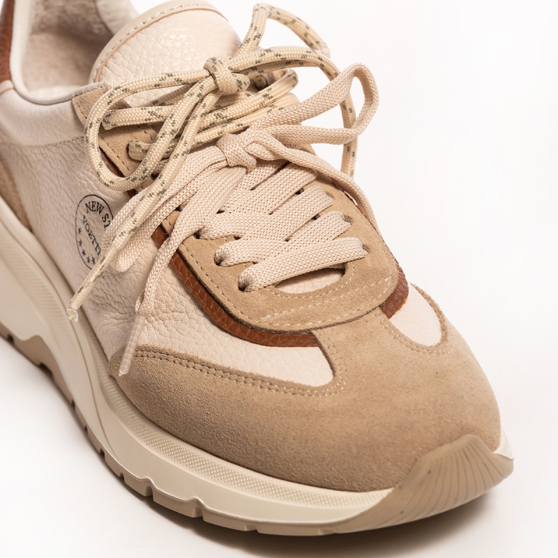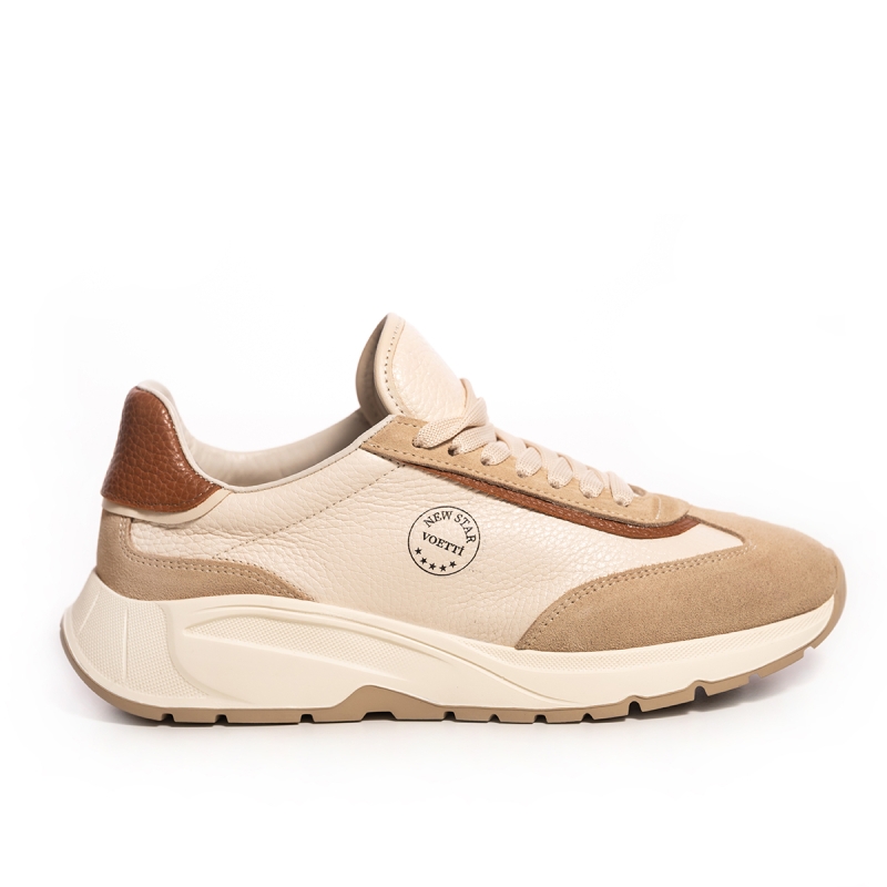 Acești adidași sunt confecționați din piele naturală de cea mai bună calitate, asigurând durabilitate și un aspect sofisticat. Nuanța bej delicată este ușor de asortat cu diverse culori și stiluri vestimentare, făcându-i extrem de versatili. Inserțiile de piele întoarsă adaugă un plus de textură și eleganță, evidențiind atenția la detalii.