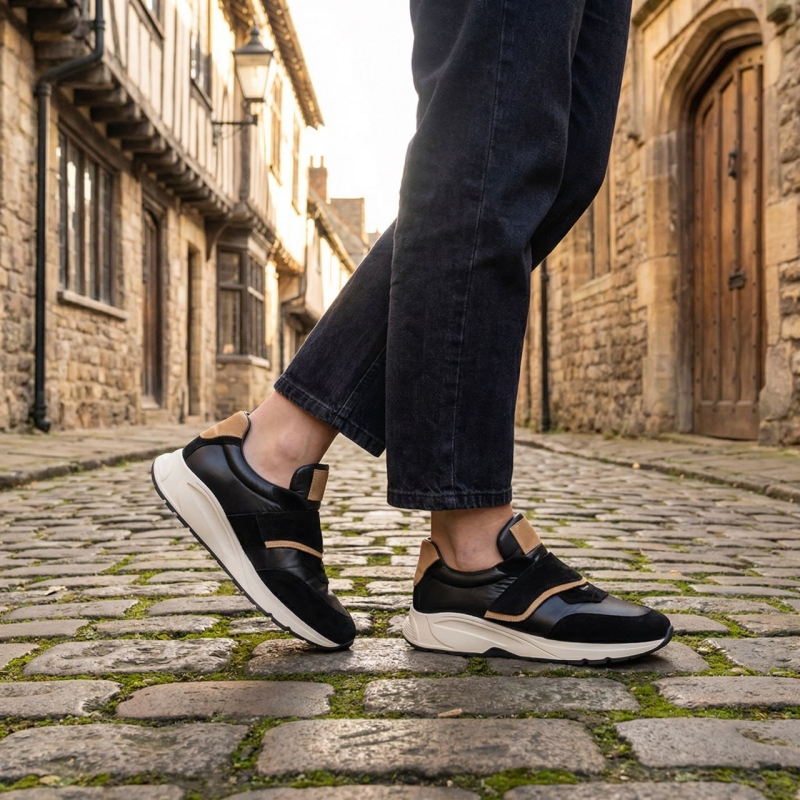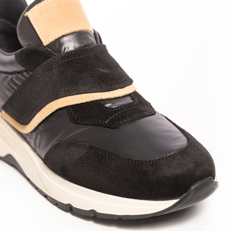 Acești sneakers negri sunt definiția stilului casual-chic. Culoarea neagră dominantă oferă versatilitate, permițându-ți să îi asortezi cu ușurință la o varietate de ținute, de la blugi și un tricou simplu, până la o rochie lejeră. Detaliile subtile, dar elegante, conferă un plus de rafinament.