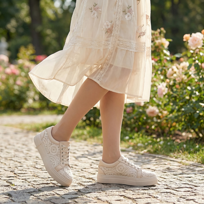 Tenisi crem cu dantelă - Eleganță și confort la fiecare pas!